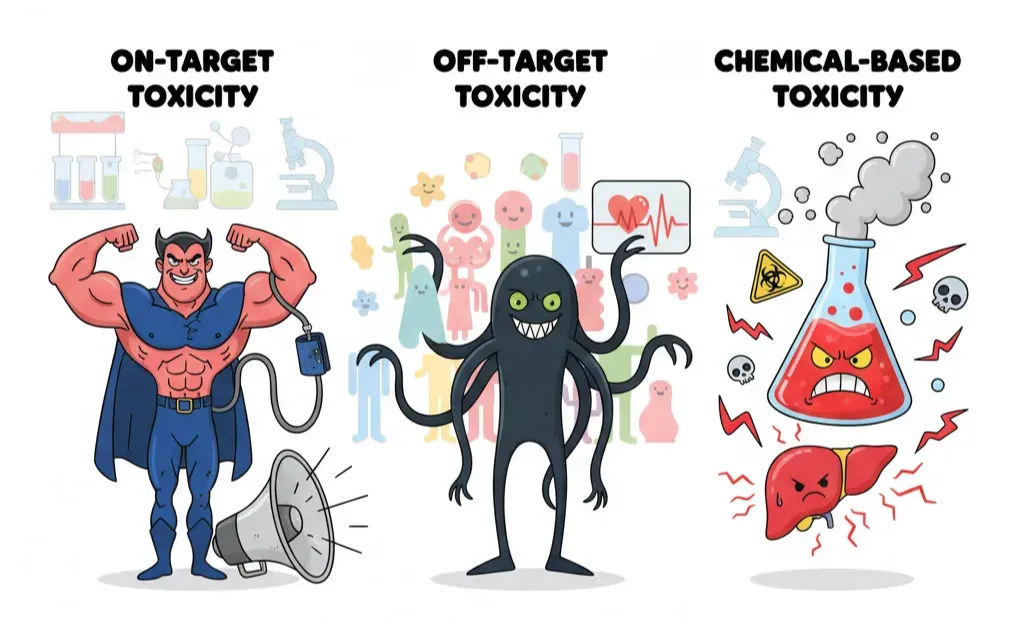 “Toxicity” sounds like a single villain, but in drug development it shows up wearing different masks. If you want to catch it early, you need to know which version you’re fighting. Broadly, toxic effects fall into three buckets: