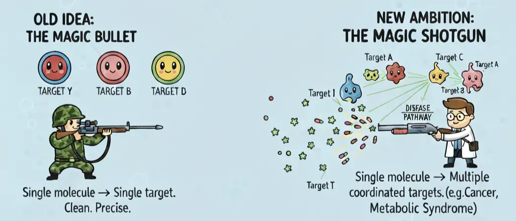 For most of the last century, drug discovery worshipped the magic bullet idea: a single, exquisitely selective molecule that hits one target and leaves everything else alone. Clean, precise, safe.